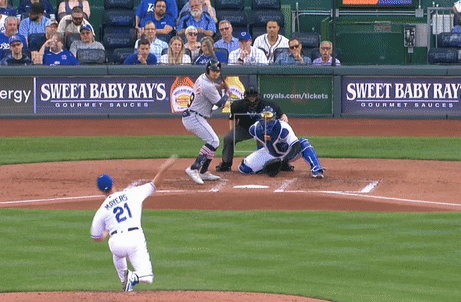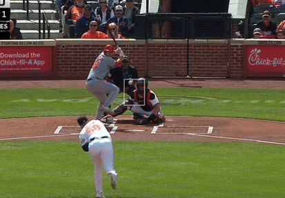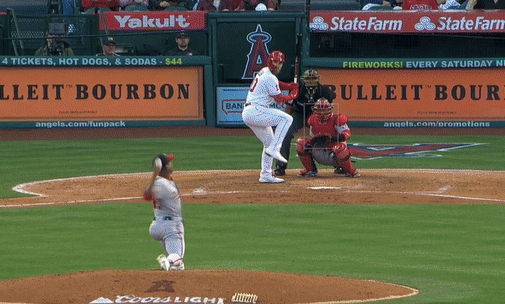 And here’s a slightly less poorly hit [Schanuel + 2 mph] fly ball, which—because it carried a few extra feet to the outfielder—had an xBA of just .491.