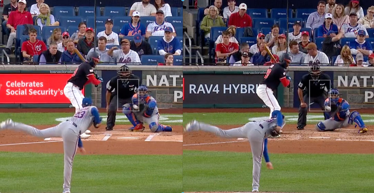 In the first inning on Aug. 19, with two strikes, David Peterson threw James Wood a fastball. In the fourth inning, again with two strikes, David Peterson again threw James Wood a fastball.