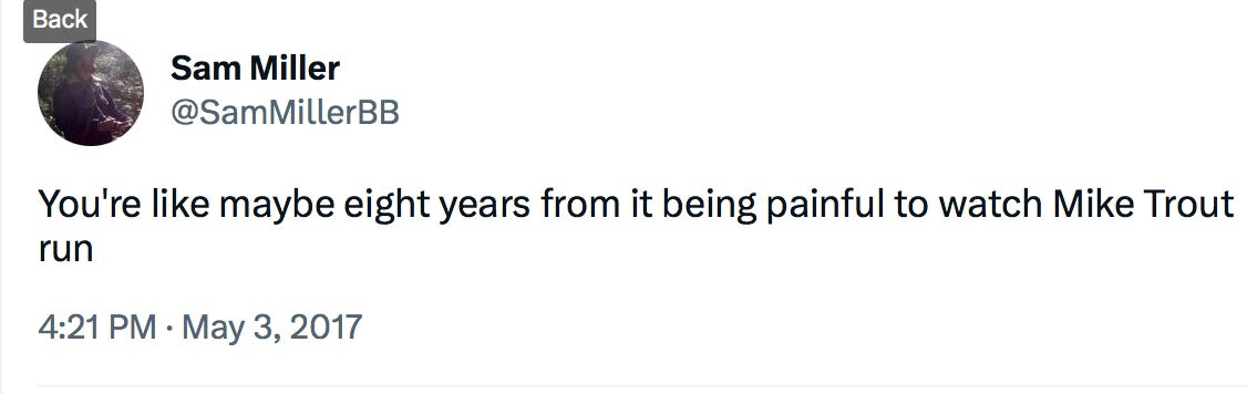 So a recurring story at times in his career was that Trout wanted to steal bases but he went through confidence slumps. Even when he was stealing bases, he wasn’t always stealing them confidently.